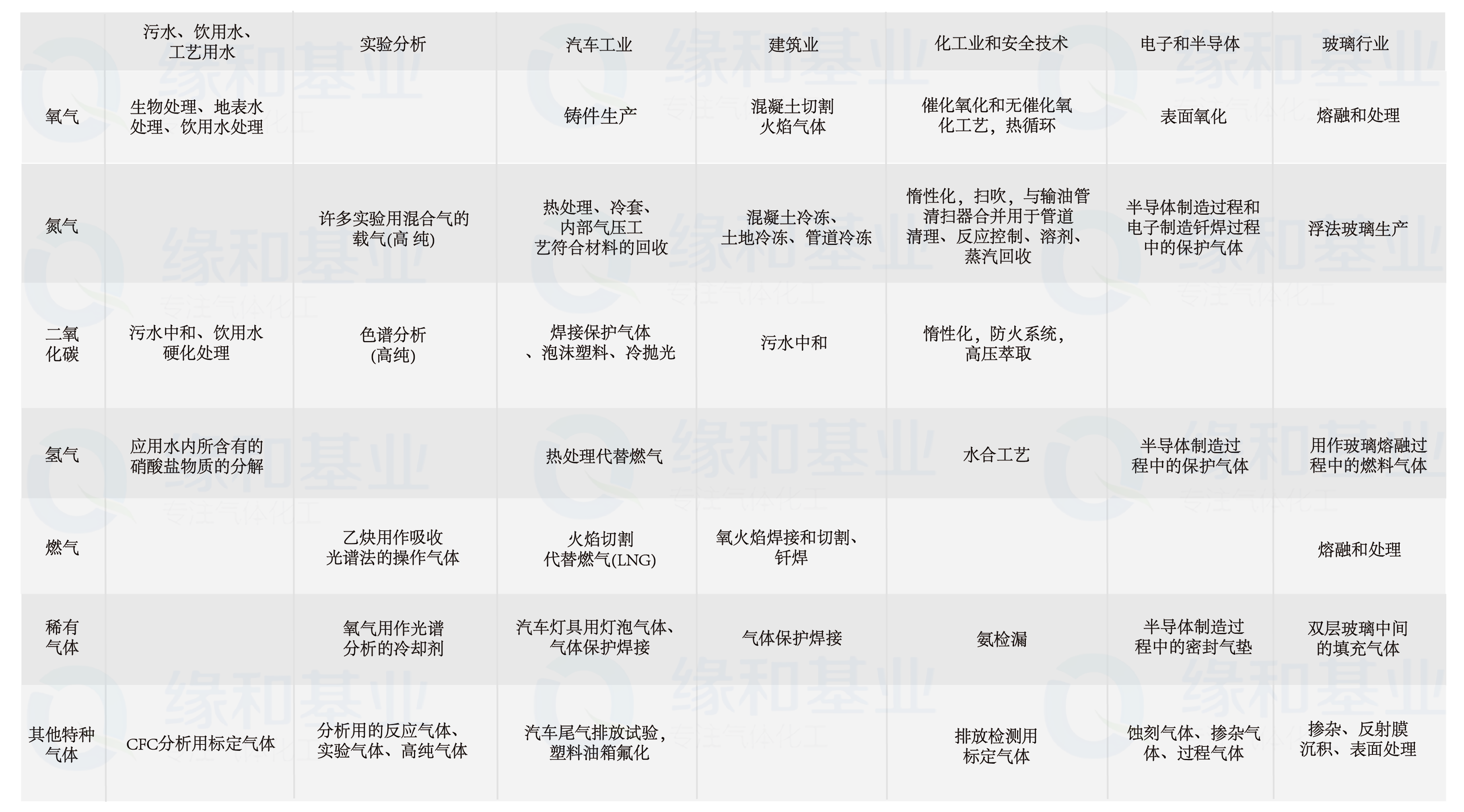 公司集生产供应为一体,提供电子气体,稀有气体,同位素气体,石化有机气体,普通工业气体,大宗液体,配套设备与工程等其他特种气体。同时根据客户各类气体供应需求提供相适应的储运形式,如1L~15L小瓶,40L~118L常规瓶,200L~5000L大罐,Y罐,T瓶,Tank罐,管束车,槽车等储运形式。以服务于电子半导体,生活娱乐,金属加工制造,配套设备与工程等150个细分行业与应用。
