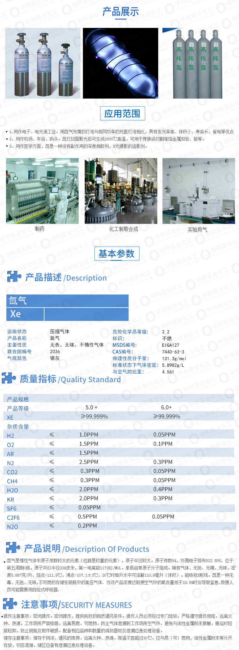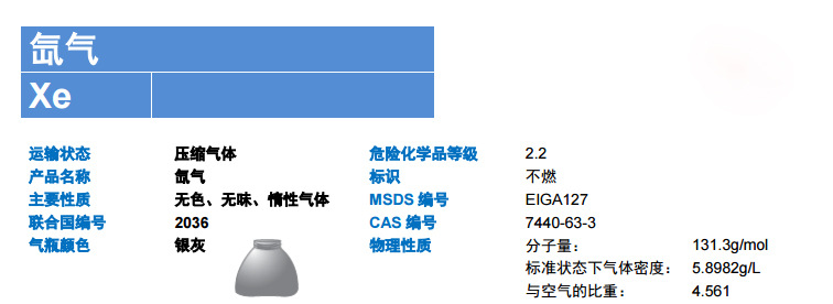 氙气 高纯氙气量大从优 可定制100L~10M3
